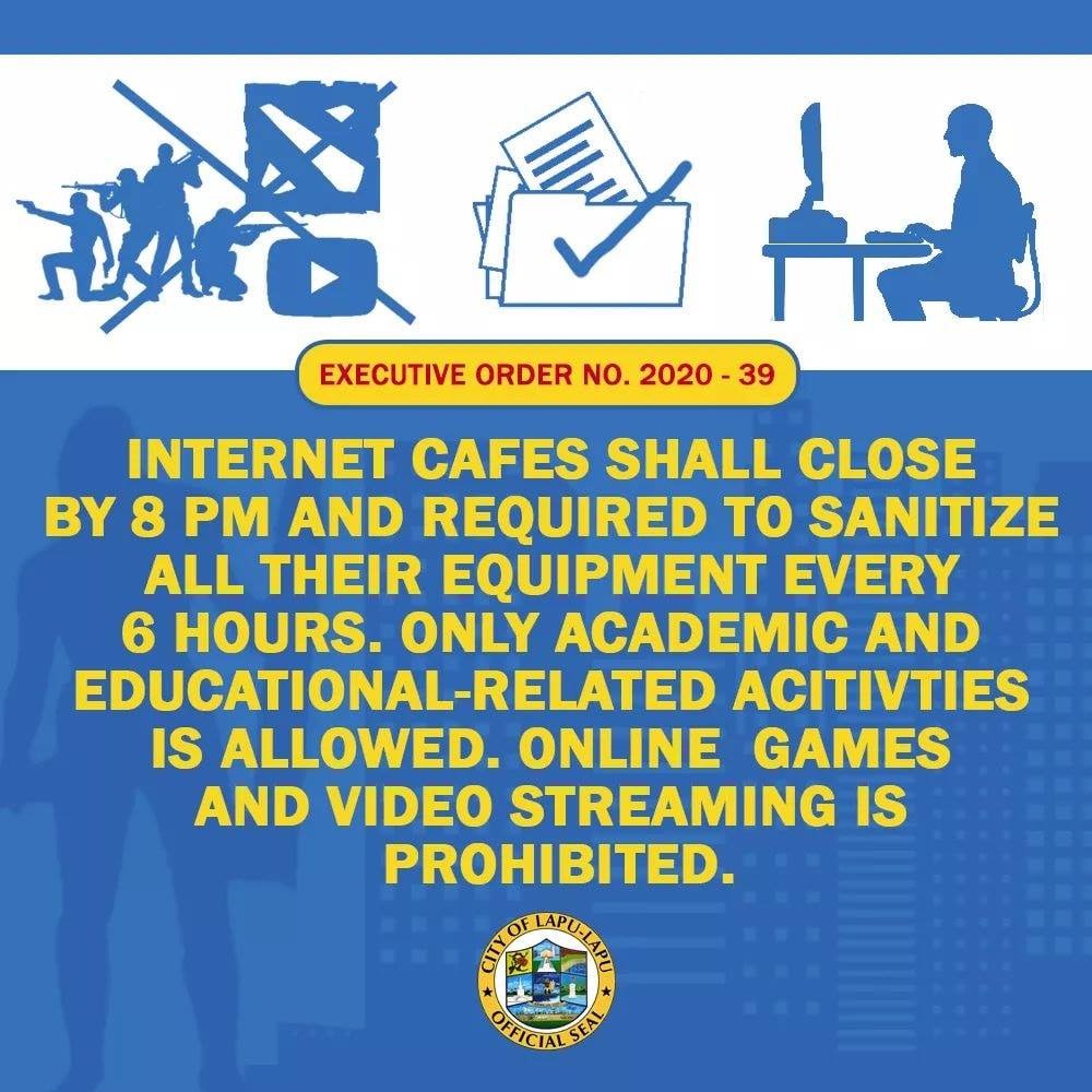また外国人渡航者のみではなく、現地でも色々と規制が入っています。以下はLapu-Lapu Cityから出ているオフィシャルの命令です。