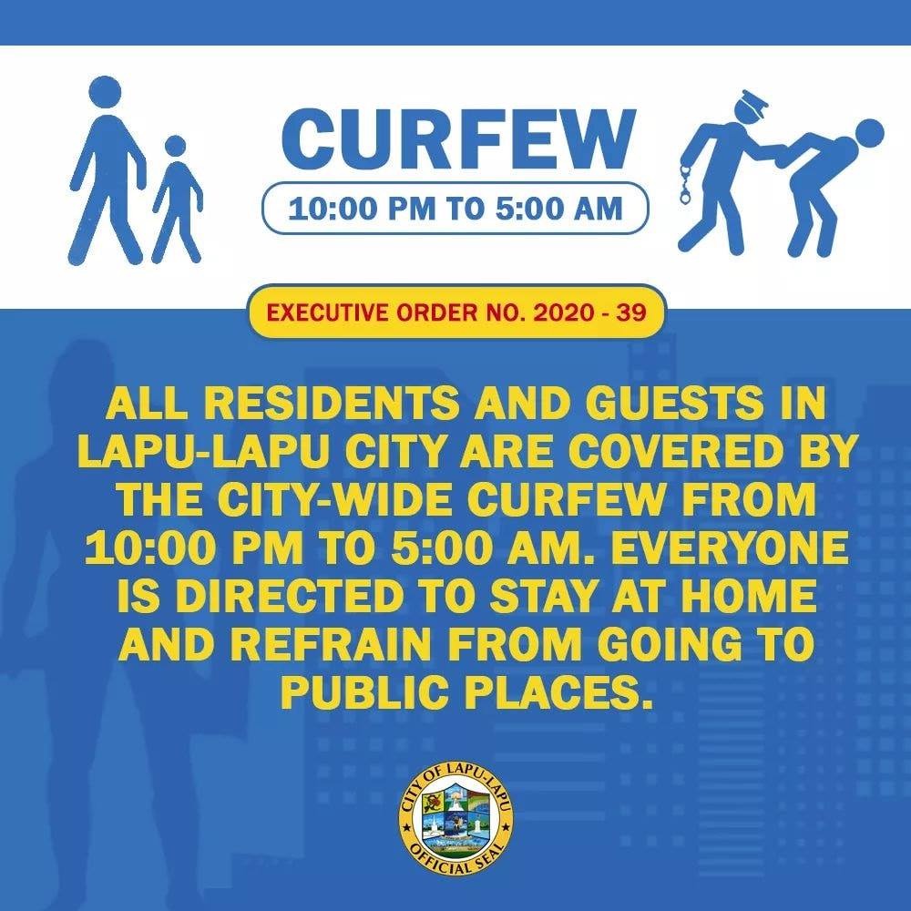① ラプラプシティ住人及び滞在者は夜10時から朝5時までの外出を禁止する(ちなみにセブ市は20:00〜5:00で発表しています)。