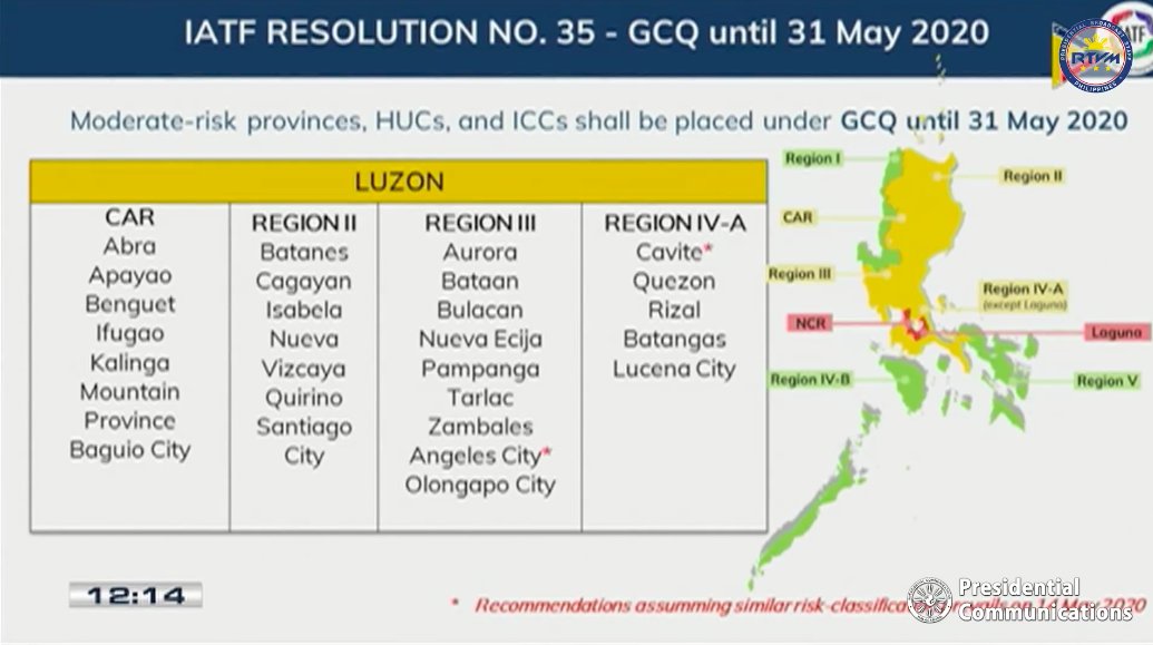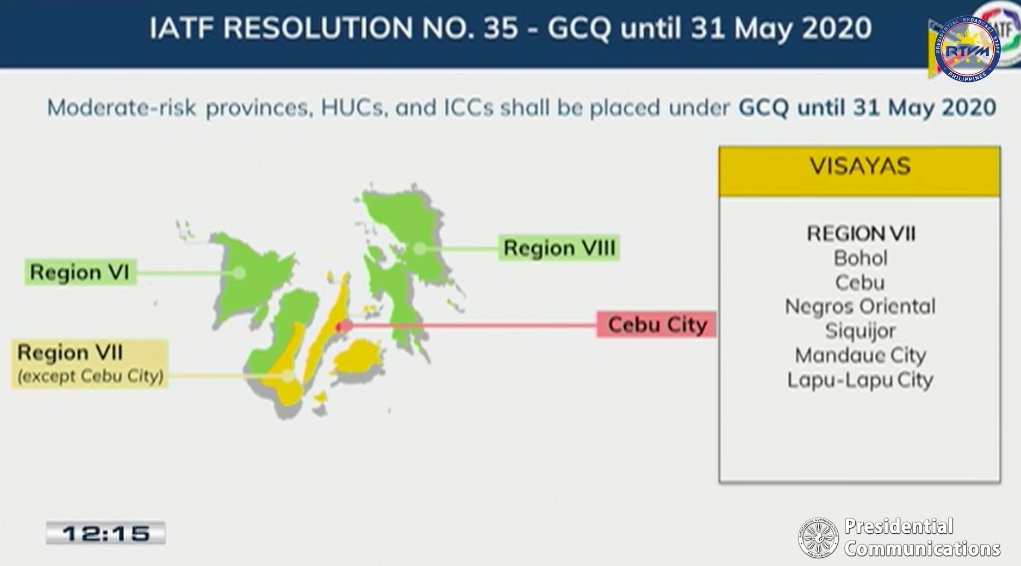 本日のお昼にフィリピン政府のスポークスマンが実質のロックダウンともいえるEnhanced Community Quarantine(以下ECQ)の5月16日以降の延長対象エリアを発表しました。残念ながらセブシティも上記ECQ延長対象エリアに含まれています:
