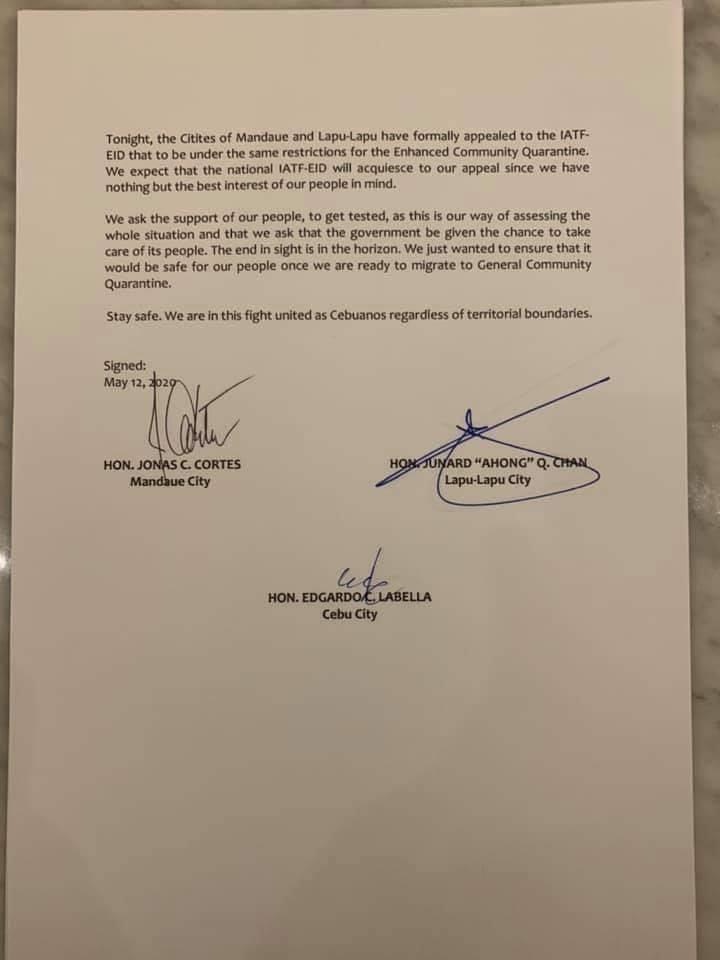 驚きの速報が入ってきました。なんとラプラプシティとマンダウエシティの市長がECQ延長の共同声明を発表しました(*セブシティ市長の署名も含む)。その可能性は低いと思っていたのでまさかです…。現地在住の方々はかなりがっかりしていると思います。