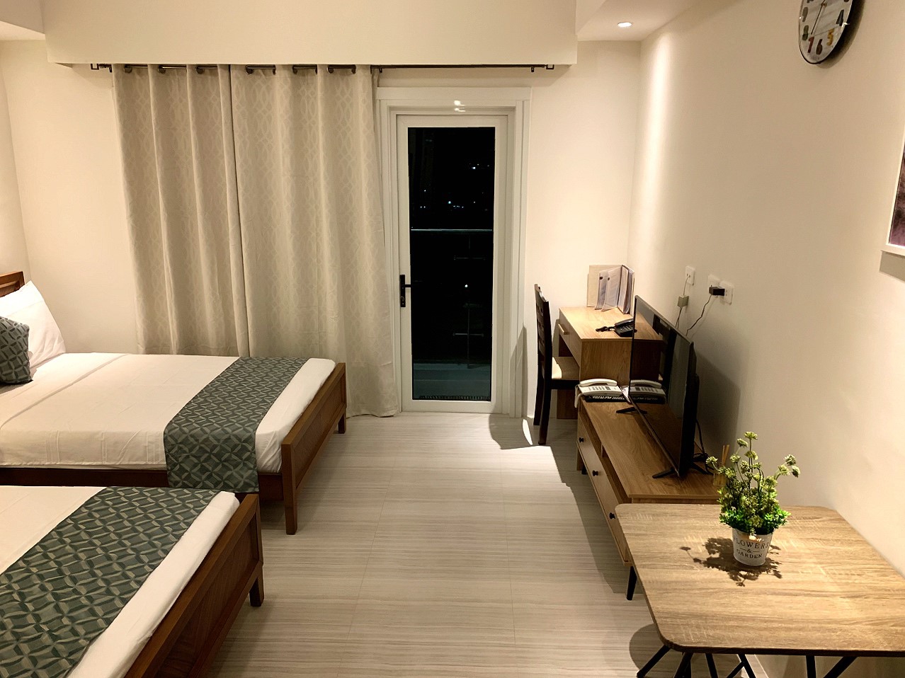 31㎡と広めなスタジオタイプのお部屋で、セミダブルベッド2台を完備しています(2つをくっつけて1つの大きなベッドにする事も可能です)。最も快適に過ごせる宿泊人数は1~2人ですが、エクストラマットも完備しており、最大で4人まで宿泊できます。その他アメニティーとして、洗濯機、冷蔵庫、電子レンジ、IH、ヘアドライヤー、スマートTV、高速ファイバーWIFI、ウォーターサーバーなどを完備しており、短期滞在と長期滞在の両方に適した場所です