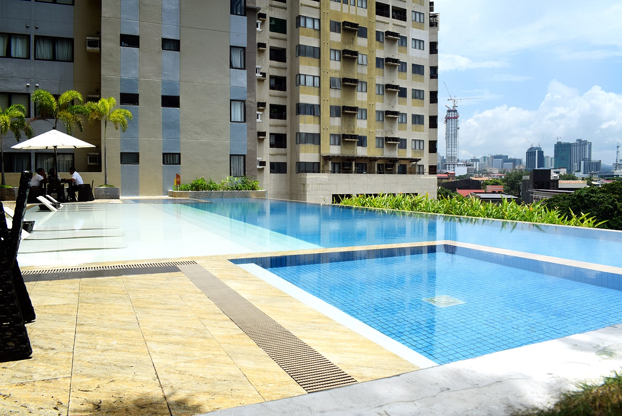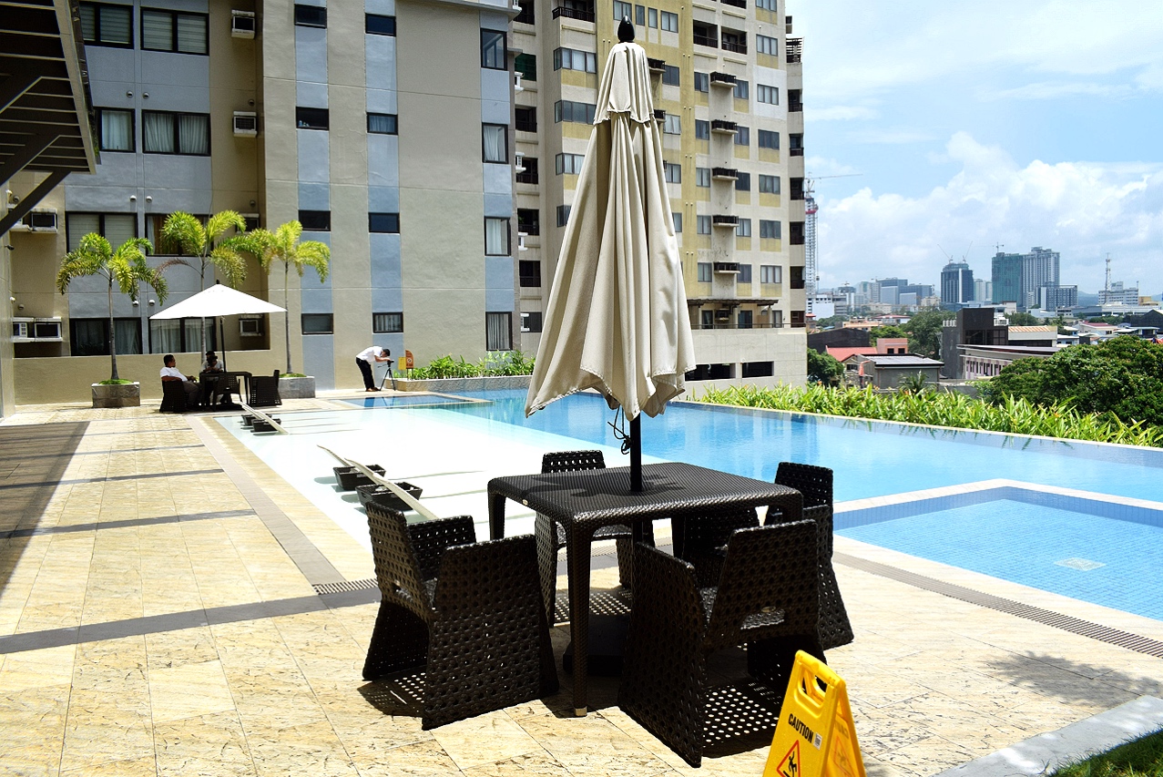 プールやジム、ラウンジなどのアメニティも良いですし、敷地内にカフェやパン屋さん、ランドリー、歯医者などもありとても便利です。& SMモールから近いのも◎です(1kmも離れていません)。