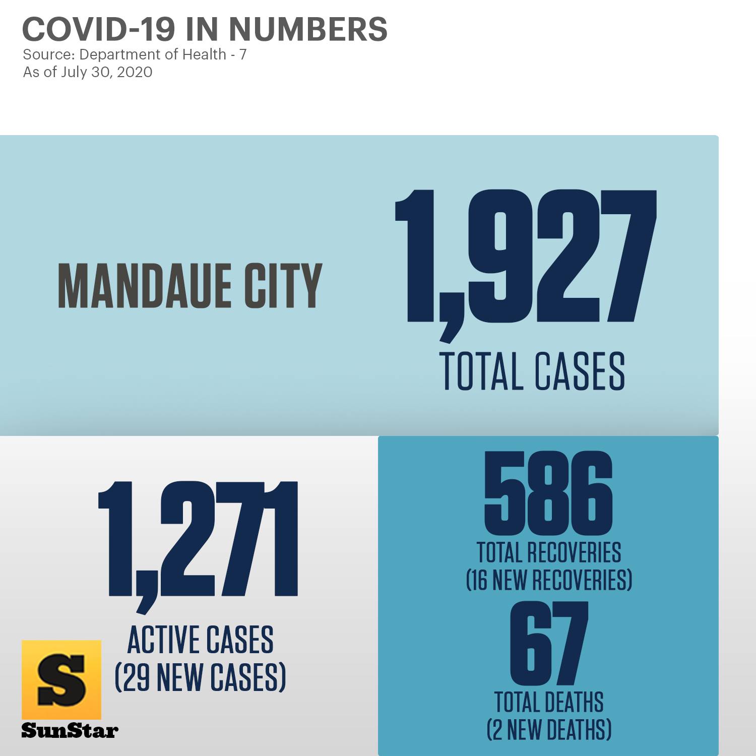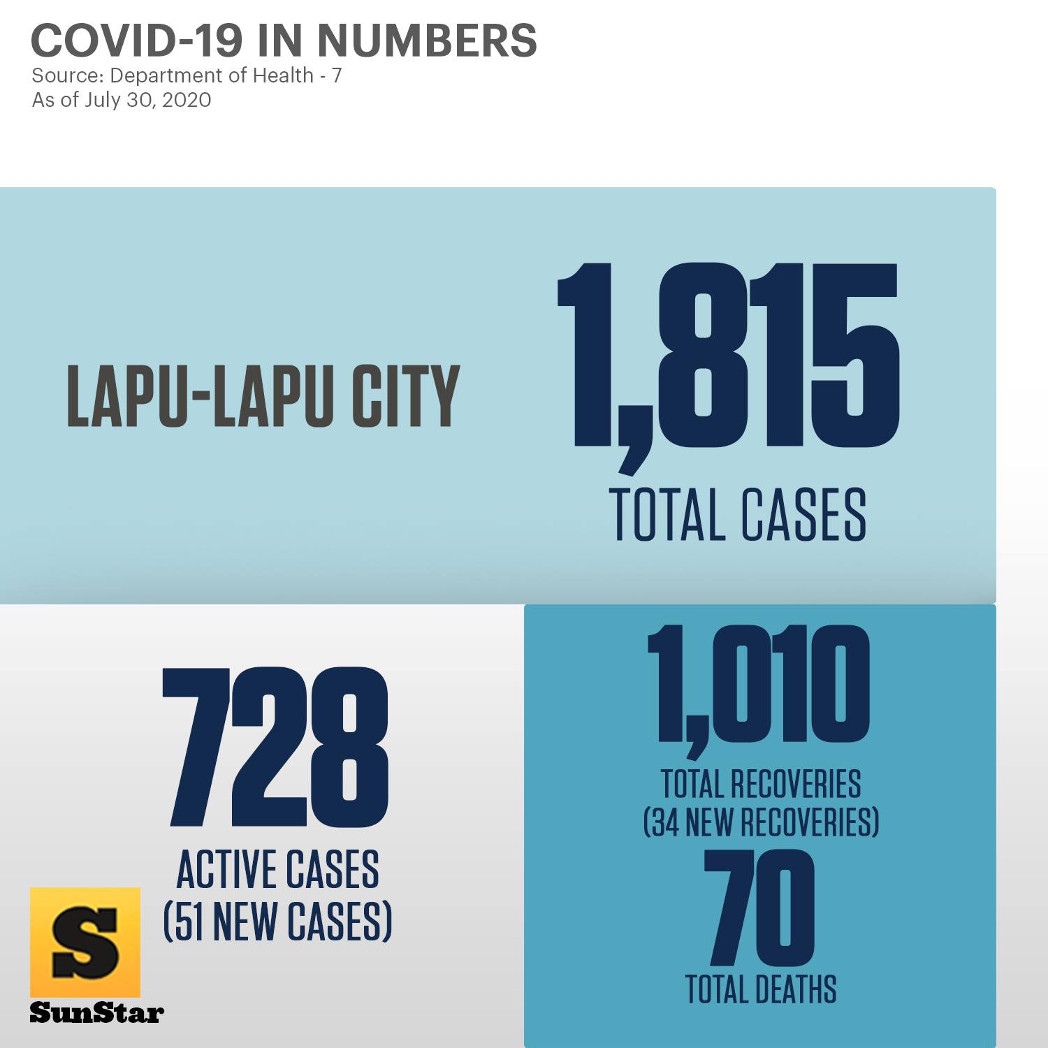 フィリピンの現地ニュースサイト「SunStar Cebu」に7月31日時点でのセブ主要エリアの感染者データが上がっていたので、以下に添付します: